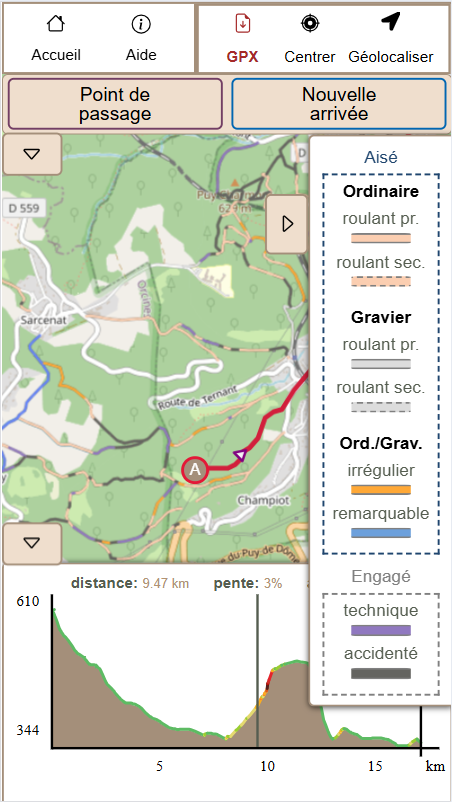 Une fois terminé, il vous sera possible de créer des parcours en identifiant les chemins par leur caractéristique (roulant, technique, accidenté, gravier...) et de les importer sur votre GPS vélo!